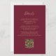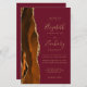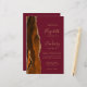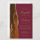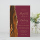 Le bord gauche de cette élégante invitation de mariage moderne présente une bordure d'agate aquarelle orange brûlé et rouille taillée avec une fausse poussière de doré. Le texte personnalisable combine une écriture dorée, un copperplate et des polices italiques sur un fond bordeaux. Ajoutez des détails supplémentaires au verso, ainsi qu'un QR code pour aider vos invités à visiter votre site web de mariage.