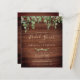 Invitation vos amis et votre famille à votre douche nuptiale avec ces bois rustique avec eucalyptus, élégante mais décontractée carte postale invitation à la douche nuptiale. Ces cartes de faire-part de mariage budgétaires ont une option d'enveloppe. Personnalisez avec le nom, la date de la douche nuptiale, l'emplacement et toute autre information. Ajoutez le site Web et toute autre information au verso. Ces invitations uniques à la douche nuptiale verdoyante feront une impression durable. DROIT D'AUTEUR © 2020 Judy Burrows, Black Dog Art - Tous droits réservés. Budget Rustic Green Invitation à la douche nuptiale