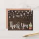 Budget Rustic String Lights on Wood with Succulent Cactus Thank You Cards avec cordes de lumières festives et un mignon sac en pot de succulents et cactus sur un arrière - plan rustique en bois. **Notre papier BUDGET est plus petit, plus léger et plus délicat, mais toujours beau! N'oubliez pas les enveloppes!** Si vous avez besoin d'aide ou de pièces de correspondance, veuillez nous contacter à l'adresse katescreationszazzle@gmail.com