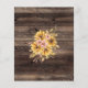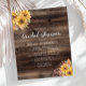 Cette invitation à la douche nuptiale rustique présente des bouquets de tournesol jaune aquarelle sur un arrière - plan en bois de grange marron, avec les mots "douche nuptiale" en écriture décontractée. Customisez le reste du texte avec le nom de la future mariée, la salle de douche et d'autres détails. A l'envers, un grand bouquet de tournesol sur le même arrière - plan en bois.