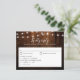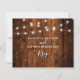 Ces cartes RSVP de mariage rustique à petit budget sont dotées d'un arrière - plan en bois chaleureux, agrémenté de lumières à cordes douces, créant une ambiance chaleureuse et accueillante. L'élégant mélange d'écriture manuscrite et de fontes sans serif ajoute une touche sophistiquée mais charmante, ce qui en fait un endroit parfait pour les mariages de grange, de campagne ou d'extérieur. L'avant présente les noms du couple dans un agencement élégant, tandis que l'arrière offre une section de réponse bien organisée avec choix de repas, assurant ainsi une expérience de séjour sans faille. Idéal pour les couples à la recherche d'un design RSVP intemporel et élégant qui complète leur thème mariage rustique, cette carte abordable allie élégamment style et fonctionnalité.