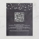 Des amis Invitations et la famille à votre mariage avec ces cartes faire-part de mariage élégantes mais rustiques de tableau noir et de lampes à cordes. Cette ardoise unique tout en une invitation de mariage dispose d'élégantes lampes à cordes blanches sur le motif d'ardoise en tableau gris avec le code qr du site Web mariage pour faciliter RSVP. Personnalisez ces invitations de mariage en tableau noir avec les noms, la date du mariage et l'emplacement. Découvrez notre collection mariage pour des invitations uniques à des mariages, des albums photos mariages, des livres d'invités, des cadeaux de fête, et plus encore ! DROIT D'AUTEUR © 2020 Judy Burrows, Black Dog Art - Tous droits réservés. Budget Rustique Éclairage de chaîne d'ardoise QR Code Mariage