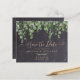 Réservez la date! Annoncez votre mariage à vos amis et à votre famille avec ces écharpes rustiques à budget et eucalyptus enregistrer les cartes de date. Ces cartes de faire-part de mariage budgétaires ont une option d'enveloppe. Personnalisez avec les noms, la date du mariage, l'emplacement. Ce mariage unique en matière de verdure sauve les cartes et fera une impression durable, vos invités s'assureront de sauver la date! DROIT D'AUTEUR © 2020 Judy Burrows, Black Dog Art - Tous droits réservés. Budget Rustique Eucalyptus Vert Économisez La Date
