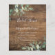 Des amis Invitations et la famille pour honorer la future mariée avec cette invitation abordable de douche nuptiale avec des feuilles d'eucalyptus aquarelle contre un arrière - plan en bois.