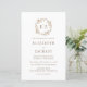 Ce design mariage rustique présente les initiales monographiques de mariée et mariée encadrées par une couronne d'aquarelle de coton et de petites fleurs. Personnalisez le texte marron avec les noms du couple et les détails du mariage. L'envers est une solide teinte brune.