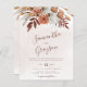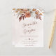 Faire-part de mariage rustique de style bohème avec des fleurs d'aquarelle et des feuilles de chute dans les tons de terre comme rouille brun, orange brûlé et terre cuite. Un choix parfait pour les mariages d'automne.