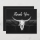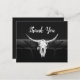Ce carte de remerciements à budget plié présente un western rustique noir et blanc crâne de vache pays rodéo cowboy thème mariage. Style ferme, vieux sauvage ouest vintage antique, cool, tendance, moderne animal de ferme design customisé. Copyright de l'image Marg Seregelyi Photography.