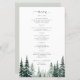 Style rustique moderne élégant typographie nature tendance sauge vert pins destination budget abordable menu mariage modèle avec un script de calligraphie chic et aquarelle pinède bois.