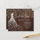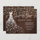 Diamants blancs brillants robe mariage sur un arrière - plan en bois brun foncé avec cordes de lumières scintillantes faisant une élégante invitation à la douche nuptiale d'inspiration rustique moderne. +++++++++++++++ VEUILLEZ LIRE CECI AVANT D'ACHETER ! Il s'agit d'une carte économique imprimée sur une feuille papier (chaque feuille comporte une carte). ++++ Pour un rapport qualité-prix optimal, notre conseil est de choisir le type de papier Semi-Gloss (il est assez épais pour être utilisé pour la papeterie) ++++ Si vous avez besoin d'enveloppes, choisissez l'OPTION ENVELOPE. +++ Vérifiez toutes les informations et l'orthographe de votre texte car vous recevrez exactement ce que vous voyez - personne d'autre ne vérifiera quoi que ce soit avant l'impression. ++++ Cette carte est conçue pour la taille 4,5" x 5,6". Dans le coque vous choisissez une autre taille de la carte et le texte sort de la page, tout doit être corrigé avant d'ajouter le produit au panier. Demandez de l'aide au service Live Design.