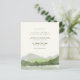 Ce faire-part de mariage économique présente des montagnes d'aquarelle boho dans les tons verts sauge. Les détails de votre mariage s'affichent dans une belle typographie élégante contre un arrière - plan beige doux. Vous pouvez facilement remplacer l'espace réservé photo au dos par votre photo préférée. Parfait pour les fêtes mariages en plein air d'automne.