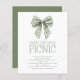 Budget Sage En vichy Pique-nique Baby shower Bow. Une alternative économique de 4,5 x 5,6 pouces sur un semi-brillant de 110lbs qui est similaire en épaisseur à une carte postale. Il y a UN par feuille. Un design coquette moderne pour votre pique-nique baby shower. Personnalisez facilement le texte au besoin et modifiez le texte et les couleurs arrière - plans si vous le souhaitez via l'option Modifier plus. Avec l'illustration d'une coquette de sauge en vichy arc.