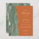 Le bord gauche de cette élégante faire-part de mariage moderne est orné d'une bordure d'aquarelle verte sauge et d'une parties scintillant en faux or. Le texte personnalisable combine écriture manuscrite dorée, cuivre et polices italiques sur un arrière - plan orange brûlé. L'envers est assorti d'un design d'agate vert sauge et or.