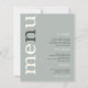 Un rapport qualité-prix BUDGET alternative sur une taille plus petite 4,5 x 5,6" semi-brillant poids 110lbs, qui est d'une épaisseur similaire à une carte postale (cependant ne convient pas à l'utilisation comme carte postale.) VEUILLEZ NOTER qu'il y a UN par feuille. Menu Mariage Texte ivoire Simple Sage. Un design typographique moderne avec Menu en grande typographie en ivoire avec le "n" en gris, tourné et à gauche sur un arrière - plan de vert sauge clair. Les couleurs Arrière - plans et textuelles peuvent être modifiées si vous le souhaitez via Personnaliser.