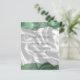 Les bords supérieur et inférieur de cette élégante faire-part de mariage moderne sont dotés d'une bordure d'aquarelle verte sauge et d'une parties scintillant en faux argent. Le texte personnalisable combine écriture manuscrite, sans serif et polices italiques en gris fusain sur une image arrière - plan de soie blanche. L'envers est assorti d'un agate vert sauge et d'un motif en soie blanche.