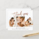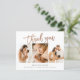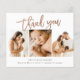 Cette photo moderne 3 merci note caractéristiques or rose écriture manuscrite merci et détails de naissance sur le devant. Le dos comprend un message personnel de toute la famille. Cliquez sur le bouton Modifier pour customiser cette conception avec vos photos et détails.
