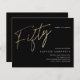 L'invitation minimaliste moderne 50e anniversaire comprend stylé faux feuille d'or numéro écriture manuscrite Cinquante et vos détails de fête dans la police serif classique sur couleur arrière - plan noire, simple et élégant, grande surprise invitation d'anniversaire adulte pour les hommes et les femmes. la couleur arrière - plan noir peut être changée à n'importe quelle couleur de votre choix.