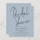 Script Dusty Blue Bridal Shower Invitation. Un prix économique PETIT 4,5 po x 5,6 po alternatif. Disponible dans un STOCK SEMI-GLOSS 110 lb CARD qui est l'option par défaut (plus épais pour les invitations), OU un STOCK SATIN FINISH 80 lb THINNER PAPER (idéal pour les boîtiers). Les enveloppes sont en option et légèrement plus grandes que la taille de la carte. . Ce design moderne en bleu poussiéreux pour vos Fêtes des mariées Invités a mis en place un script élégant pour la Fête des mariées en haut et facilement personnaliser avec vos détails en dessous. Vous pouvez également modifier les couleurs du texte et de l'arrière - plan de chaque côté si vous le souhaitez via l'option Customiser plus.