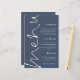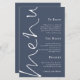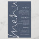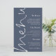 Script Budget Dusty Marine Blue Mariage Menu. Une taille de prix budget 5.5" x 8.5", Ce design moderne a Menu dans un élégant script défini qui tourne à gauche et le reste du texte est aligné à droite que vous pouvez facilement personnaliser, ainsi que vos noms et date mariage au dos. Les couleurs texte et arrière - plan de chaque côté peuvent être changées à n'importe quel de votre choix via l'option customiser plus loin.