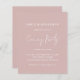 Script Budget Dusty Rose Mariage soirée invitation. Un rapport qualité-prix BUDGET alternative sur une taille plus petite 4,5 x 5,6" semi-brillant poids 110lbs, qui est d'une épaisseur similaire à une carte postale (cependant ne convient pas à l'utilisation comme carte postale.) VEUILLEZ NOTER qu'il y a UN invitation par feuille. Un ensemble de style manuscrit pour Soirée et le reste du texte que vous pouvez facilement personnaliser. Le texte et les couleurs arrière - plans peuvent être changés à n'importe quel ou à votre choix via l'option customiser plus loin.
