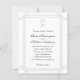 Cette invitation de mariage présente un design noir et blanc épuré et classique qui se révèle intemporel et élégant. Elle comporte une simple bordure à double ligne avec des détails de coins adoucis qui encadrent magnifiquement la mise en page. En haut, un monogramme ovale raffiné apporte une touche personnelle. Le mélange de polices de caractères script et serif lui confère une atmosphère romantique et formelle rappelant la calligraphie traditionnelle, mais avec une touche moderne. Un excellent choix pour les couples qui aiment le style minimaliste avec une pointe de charme vintage.