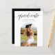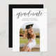 Un faire-part de graduation minimaliste conçu avec une photo customisée en forme d'arc et une écriture classique élégante de "diplômé".