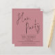 Script Dusty Rose Hen Party. Un prix économique PETIT 4,5 po x 5,6 po alternatif. Disponible dans un STOCK SEMI-GLOSS 110 lb CARD qui est l'option par défaut (plus épais pour les invitations), OU un STOCK SATIN FINISH 80 lb THINNER PAPER (idéal pour les boîtiers). Les enveloppes sont en option et légèrement plus grandes que la taille de la carte. Ce design moderne pour votre Hen Night Invitees a établi un script élégant pour le titre principal en haut et facilement personnalisable avec vos détails en dessous. Vous pouvez également modifier les couleurs du texte et de l'arrière - plan de chaque côté si vous le souhaitez via l'option Customiser plus.