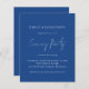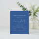 Budget Script Mariage Soirée Fête Mid Blue. Un rapport qualité-prix BUDGET alternative sur une taille plus petite 4,5 x 5,6" semi-brillant poids 110lbs, qui est d'une épaisseur similaire à une carte postale (cependant ne convient pas à l'utilisation comme carte postale.) VEUILLEZ NOTER qu'il y a UN invitation par feuille. Un ensemble de style manuscrit pour Soirée et le reste du texte que vous pouvez facilement personnaliser. Le texte et les couleurs arrière - plans peuvent être changés à n'importe quel ou à votre choix via l'option customiser plus loin.