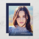 Annonce de graduation Budget Moderne Élégante avec votre photo et notre superposition de script tendance en blanc. Le dos est un bleu marine moderne, mais toutes les polices et les couleurs sont facilement modifiables. Un texte tourbillonnant élégant met en valeur votre photo. Parfait pour célébrer votre diplômé ! Chic et adorable. Veuillez nous contacter à cedarandstring@gmail.com si vous avez besoin d'aide pour la conception ou les produits assortis.