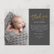 Cette photo moderne de remerciement note comporte un script or de remerciement, message personnel et une photo verticale sur le devant. Le dos comprend une deuxième photo bébé qui est une photo horizontale à fond saigné.