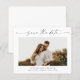 Une élégante photo de script pour enregistrer la date avec une photo horizontale et un texte minimal. Cliquez sur le bouton personnaliser pour personnaliser ce design.