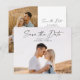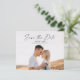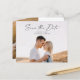 Carte de date de mariage Budget Script Photo. Le verso comprend une deuxième photo avec des détails supplémentaires. Cliquez sur le bouton modifier pour personnaliser ce design avec vos photos et les détails de votre mariage.
