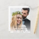 Élégant et économique, petit faire-part mariage et accueil. Le devant présente votre photo de jour de mariage superposée avec "Happily Ever After Party" dans un mélange de typographie moderne simple et un script élégant avec des swashes. Sous votre photo, ajoutez vos prénoms et votre date de mariage. Au contraire, personnalisez votre message et vos détails de réception ou de réception et ajoutez vos noms dans un script de type signature.