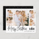 Élégant budget Moderne Calligraphie Script Simple Noir et Blanc 5 Photo Collage Multi Photo Carte de Noël. Cette carte de vacances festive, minimaliste, cinq (5) photo comporte un joli collage photo, 3 pin doodle, "Joyeux Noël" texte de bienvenue qui est écrit dans un blanc de caractère de signature lettré à la main. Sur le côté inverse des points enneigés motif avec une belle photo de famille. Jolie carte de voeux pour votre famille et vos amis en hiver.