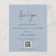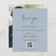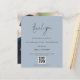 Script QR Code Mariage Galerie photo Dusty Blue Merci. Un prix économique PETIT 4,5 po x 5,6 po alternatif. Disponible dans un STOCK SEMI-GLOSS 110 lb CARD qui est l'option par défaut (plus épais pour les invitations), OU un STOCK SATIN FINISH 80 lb THINNER PAPER (idéal pour les boîtiers). Les enveloppes sont en option et légèrement plus grandes que la taille de la carte. Un design minimaliste de typographie avec un ensemble de style design d'écriture manuscrite pour le Merci. Sur le dos, remplacez l'exemple de photo par votre préféré de la journée comme souvenir pour vos invités. Personnalisez facilement le reste du texte avec votre message et vos noms et remplacez l'exemple de code QR par votre propre menant à votre galerie photo mariage en ligne.