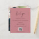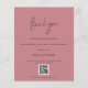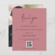 Script QR Code Mariage Galerie de photos Dusty Rose rose Merci. Un prix économique PETIT 4,5 po x 5,6 po alternatif. Disponible dans un STOCK SEMI-GLOSS 110 lb CARD qui est l'option par défaut (plus épais pour les invitations), OU un STOCK SATIN FINISH 80 lb THINNER PAPER (idéal pour les boîtiers). Les enveloppes sont en option et légèrement plus grandes que la taille de la carte. Un design minimaliste de typographie avec un ensemble de style design d'écriture manuscrite pour le Merci. Sur le dos, remplacez l'exemple de photo par votre préféré de la journée comme souvenir pour vos invités. Personnalisez facilement le reste du texte avec votre message et vos noms et remplacez l'exemple de code QR par votre propre menant à votre galerie photo mariage en ligne.