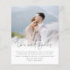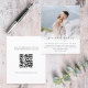 Un rapport qualité-prix BUDGET alternative sur une taille plus petite 4,5 x 5,6" semi-brillant poids 110lbs, qui est d'une épaisseur similaire à une carte postale (cependant ne convient pas à l'utilisation comme carte postale.) VEUILLEZ NOTER qu'il y a UN invitation par feuille. Budget Élégant Script Photo Mariage Love Merci. L'amour et les remerciements sont dans un style manuscrit. Personnalisez facilement le reste du texte à vos propres détails et remplacez l'exemple de photo à l'avant par le vôtre. Ajoutez votre code QR à votre galerie de photos en ligne mariage au verso en remplaçant le code QR de l'échantillon. Vous pouvez créer des codes QR gratuitement en ligne, rechercher 'générateur de code QR'.