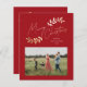 Un script budget rouge et doré branches 2 photo Joyeuse carte de vacances de Noël avec simple typographie. Cliquez sur le bouton Modifier pour customiser cette conception.