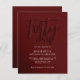 Design présente un dégradé foncé arrière - plan avec un mot "quarante" se démarque audacieusement en lettres rouges brillantes. Mais il y a quelque chose de plus : les lettres créent un effet d'ombre cool, ce qui leur donne l'air de sortir de la page. Ce n'est pas n'importe quel nombre, c'est une grosse affaire. Cette invitation dit : "Préparez-vous à une fête classe et élégante !"