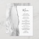 Le bord gauche de cet élégant menu mariage moderne présente une bordure d'aquarelle gris et blanc ornée d'une parties scintillant en faux argent. Le texte personnalisable combine un script d'écriture manuscrite grise de fusain blanc et des polices de cuivre sur un arrière - plan blanc. L'envers présente un design d'agate gris et argenté assorti.
