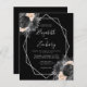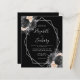 Cette élégante faire-part de mariage moderne présente un cadre géométrique argenté orné de pêches, de fleurs noires et argentées sur un arrière - plan noir. Le texte personnalisable combine écriture fantaisie gris argenté, cuivre et polices italiques. Ajoutez des détails supplémentaires au verso, ainsi qu'un code QR pour aider vos invités à visiter votre site Web mariage.