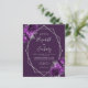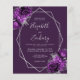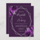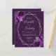 Cette élégante faire-part de mariage moderne présente un cadre géométrique argenté décoré de fleurs violettes et argentées sur un arrière - plan prune violet. Le texte personnalisable combine écriture fantaisie gris argenté, cuivre et polices italiques. Ajoutez des détails supplémentaires au verso, ainsi qu'un code QR pour aider vos invités à visiter votre site Web mariage.