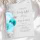 The left-hand edge of this elegant modern 50th anniversary party invitation features a turquoise and teal watercolor floral bouquet trimmed with silver foliage and faux silver glitter. The customizable text combines charcoal gray handwriting, copperplate and italic fonts on a pale gray background. The reverse side features a matching design.