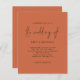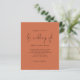 Faire-part de mariage simple en terre cuite. Un prix économique PETIT 4,5 po x 5,6 po alternatif. Disponible dans un STOCK SEMI-GLOSS 110 lb CARD qui est l'option par défaut (plus épais pour les invitations), OU un STOCK SATIN FINISH 80 lb THINNER PAPER (idéal pour les boîtiers). Les enveloppes sont en option et légèrement plus grandes que la taille de la carte. Un design d'élégance simple classique sur Terracotta. Les enveloppes sont en option. Une typographie stylisée en noir pour l'en-tête principal du Mariage De compléter le reste du texte que vous pouvez facilement personnaliser.