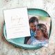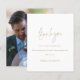 Un rapport qualité-prix BUDGET alternative sur une taille plus petite 4,5 x 5,6" semi-brillant poids 110lbs, qui est d'une épaisseur similaire à une carte postale (cependant ne convient pas à l'utilisation comme carte postale.) VEUILLEZ NOTER qu'il y a UN par feuille. Budget Simple Gold Script Photo Mariage Merci. Un design minimaliste de typographie avec un ensemble de style design d'écriture manuscrite pour le Merci. Sur le dos, remplacez l'exemple de photo par votre préféré de la journée comme souvenir pour vos invités. Personnalisez facilement le reste du texte avec votre message et vos noms.