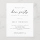 Budget Simple Hen Party Brunch Bubbly Invitation. Un prix économique PETIT 4,5 po x 5,6 po alternatif. Disponible dans un STOCK SEMI-GLOSS 110 lb CARD qui est l'option par défaut (plus épais pour les invitations), OU un STOCK SATIN FINISH 80 lb THINNER PAPER (idéal pour les boîtiers). Les enveloppes sont en option et légèrement plus grandes que la taille de la carte. Une élégance simple en noir et blanc, avec Hen Party dans un script de style manuscrit. Personnalisez facilement le reste du texte à vos propres détails. Vous pouvez également modifier le texte et les couleurs arrière - plans via l'option customiser plus si vous le souhaitez.
