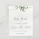 Belle invitation de baby shower budget avec des eucalyptus aquarelles et feuilles d'or.