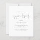 Budget Simple Script Engagement Party Invitation. VEUILLEZ NOTER qu'il y a UN invitation par feuille. Une taille plus petite 4,5 x 5,6" budget prix 110gsm semblable en épaisseur à une carte postale. Une élégance simple avec une typographie informelle en noir pour le titre principal Partie d'engagement complétant le reste du texte que vous pouvez facilement personnaliser.