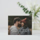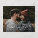 Cette carte de pré-réservation de mariage à photo avec script moderne présente un design élégant et minimaliste avec une typographie blanche écrite à la main sur une photo pleine page. Détails personnalisables et photo sur le devant. Le verso propose un message personnel. Cliquez sur le bouton Modifier pour personnaliser ce design.