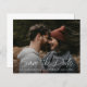 Ce script moderne Photo Wedding Save the Date présente un design élégant et minimal avec des lettres manuscrites enregistrer la date de la typographie blanche sur une photo à fond saigné. Détails personnalisables et photo sur le devant. Le dos offre un message personnel. Cliquez sur le bouton Modifier pour personnaliser cette conception.