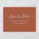 Faire-part de mariage à budget minimaliste simple, annonce "save the date" non photo personnalisée abordable à petit budget, carte postale dans les tons terreux terracotta, boho désert rouille orange brûlé. Modèle de design épuré et simple avec une typographie/calligraphie élégante en lettres cursives manuscrites "Save the Date". Cette carte classique est parfaite pour un couple qui souhaite une annonce "save the date" traditionnelle avec une touche moderne, sans photo. Si vous avez besoin d'aide ou d'articles assortis, veuillez contacter le concepteur.